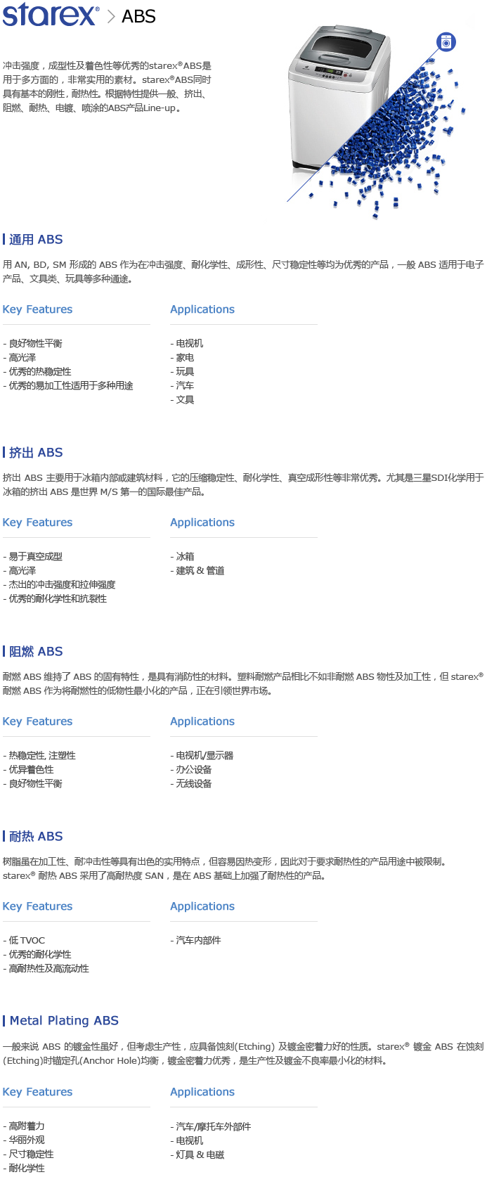 >> 韓國三星Starex系列ABS工程塑料