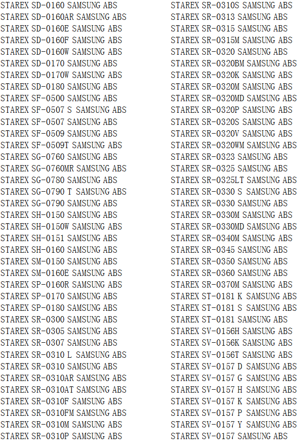 韓國三星Starex系列ABS工程塑料