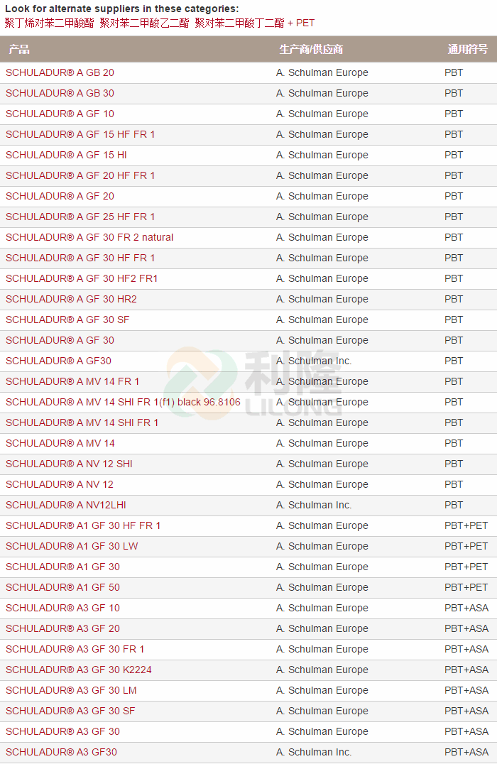 當前位置:塑料 >> 塑膠原料 >> PBT塑膠原料 >> 美國舒爾曼Schuladur系列PBT工程塑料