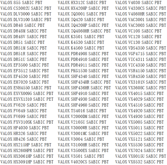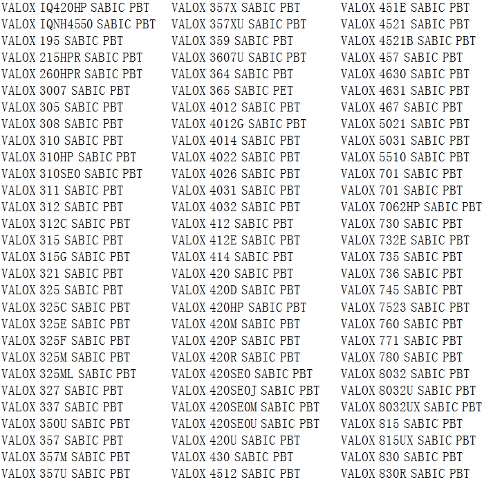 當前位置:塑料 >> 塑膠原料 >> PBT塑膠原料 >> 沙比克VALOX系列PBT塑膠原料