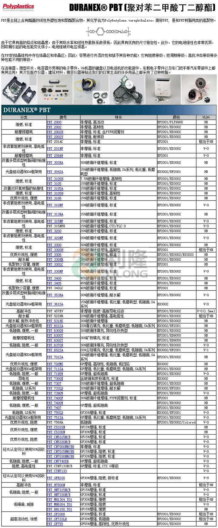 >> 日本寶理DURANEX系列PBT工程塑料