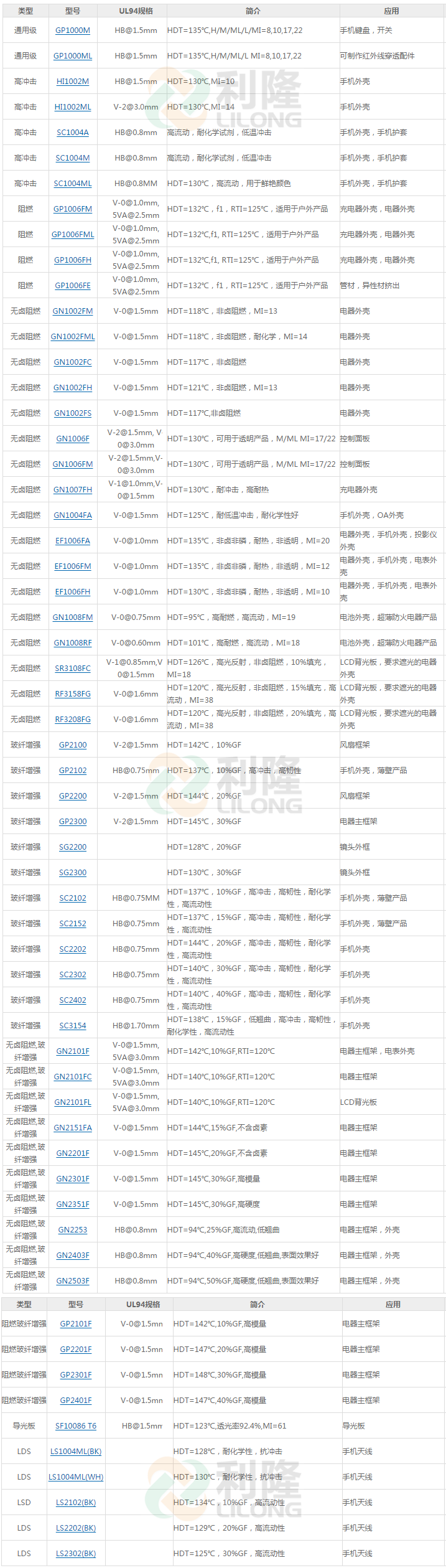 [塑料簡介:]利隆塑料經營國內外品牌POM塑膠原料,PC塑膠原料,PBT塑膠原料,PEI塑膠原料,LCP塑膠原料,PEEK塑膠原料,PPA塑膠原料,PPS塑膠原料,PPSU塑膠原料,ABS塑膠原料,歡迎廣大客戶來電來函