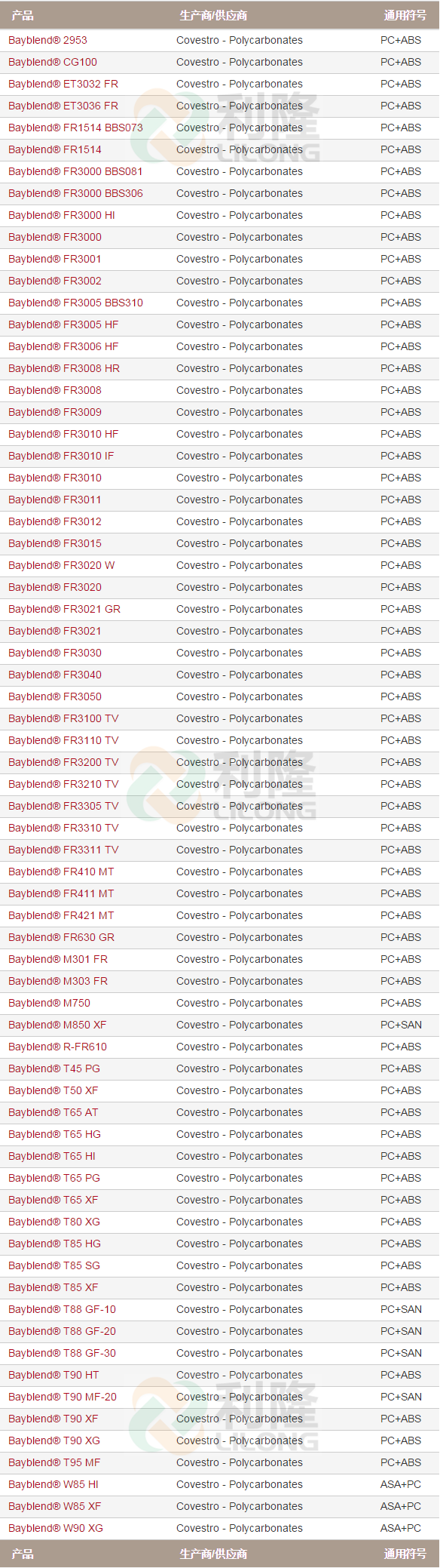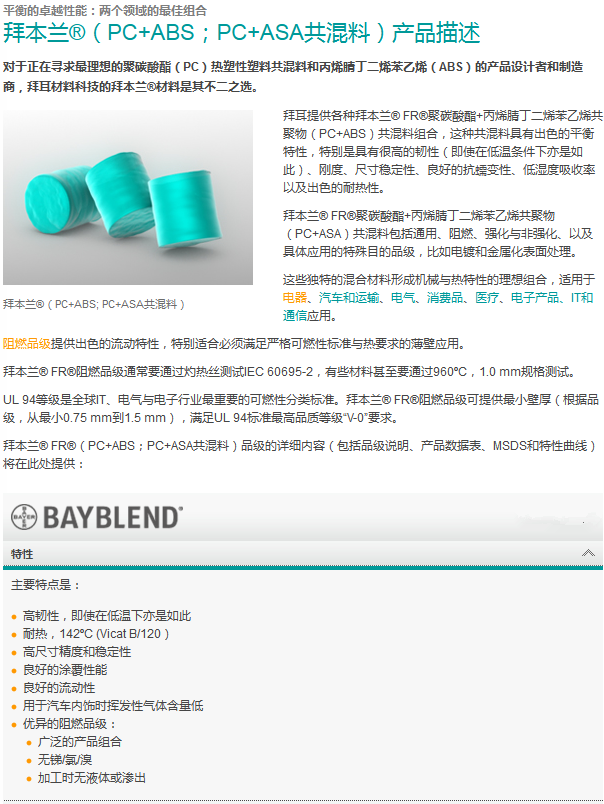 >> 德國拜耳Bayblend(科思創)系列PC/ABS塑膠原料