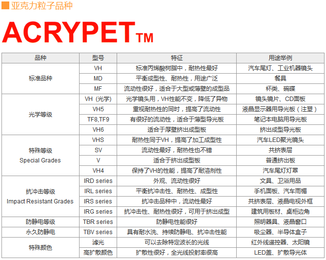 Acrypet MD Mitsubishi Rayon America Inc. Acrylic (PMMA)