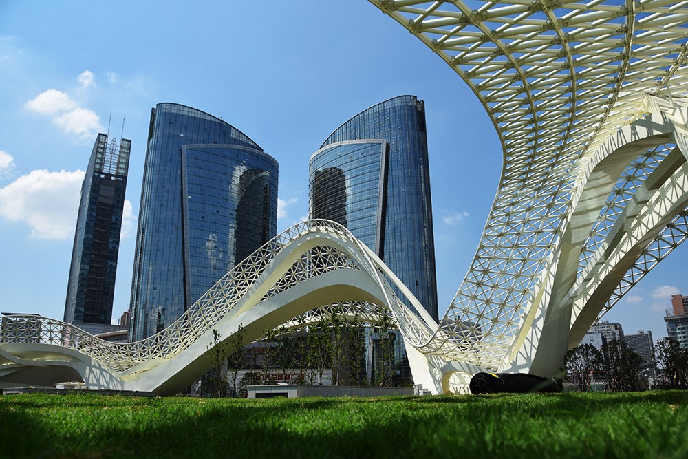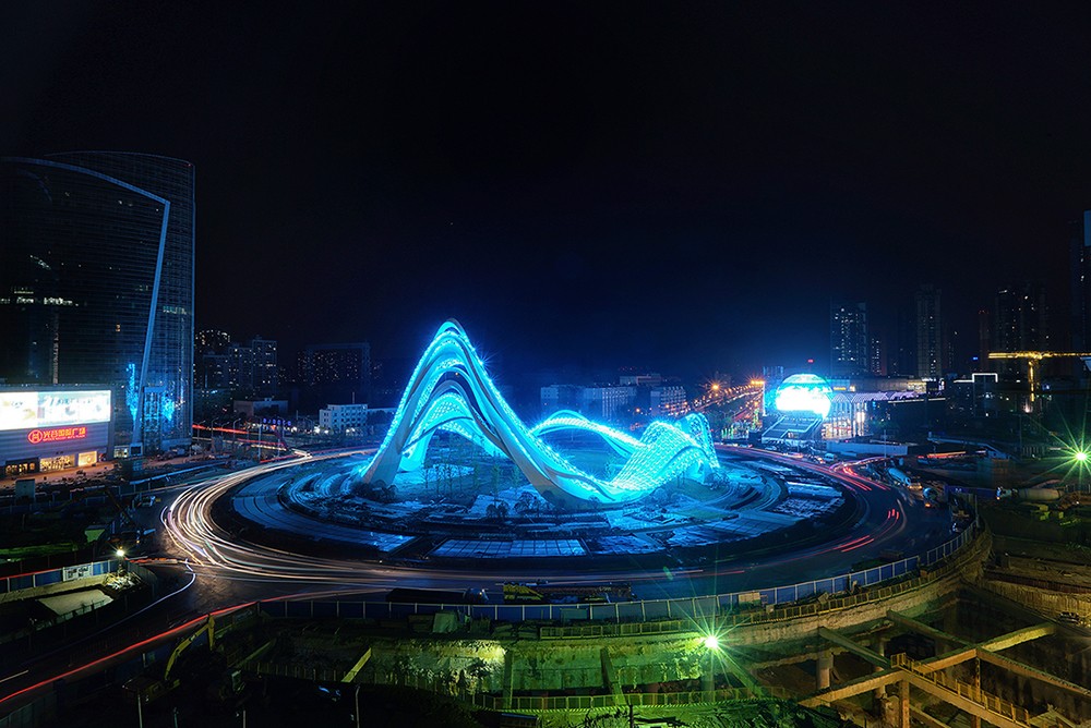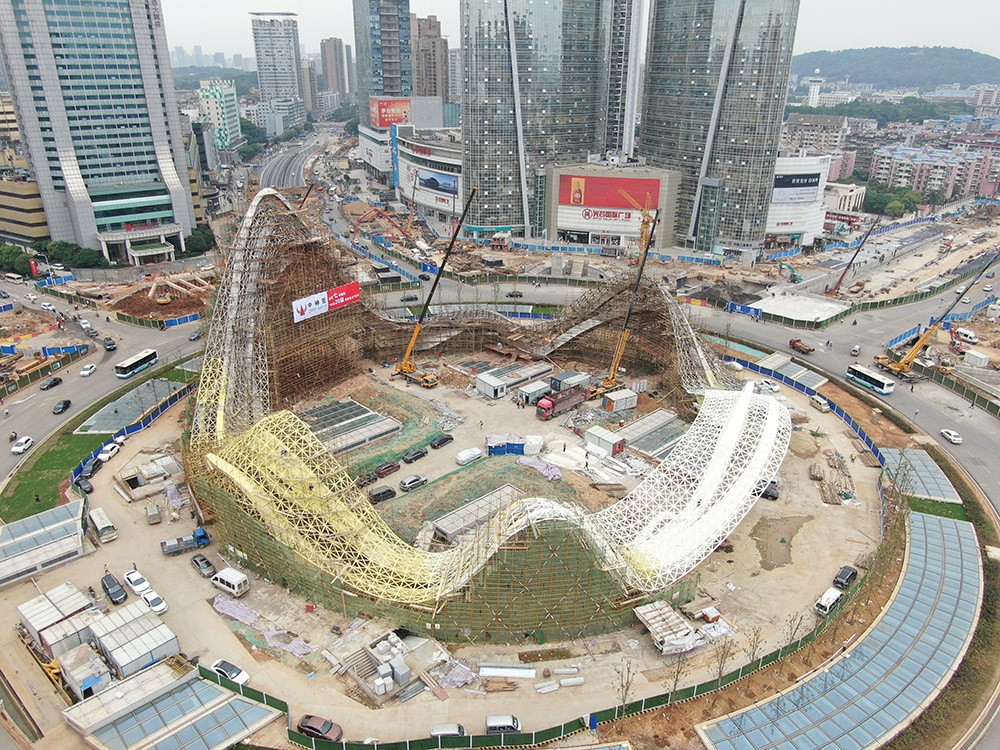 《星河》高40m 直徑90m 不銹鋼 鋼結構 設計:北京央美城市公共藝術院 2019年 位于武漢光谷廣場